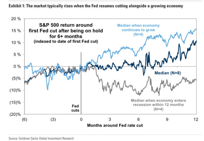 Investment banks, including Barclays and Goldman Sachs, now see 3 interest rate cuts this year, and according to Goldman, the S&P 500 can continue to rise after rate cuts if the economy continues to grow (its base case). Goldman expects earnings (base line) to grow about 7% next year.