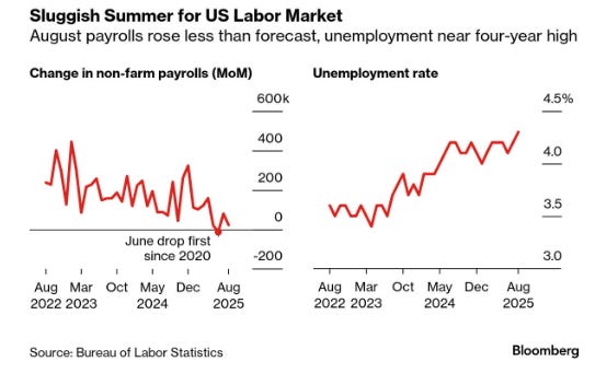 The biggest hit was another weak August jobs report, which saw a 22k increase in jobs and a revised negative job growth in June.