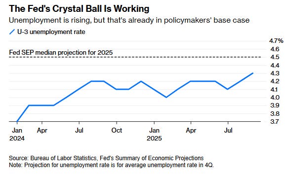 The Fed officials can say - I told you so, as back in June (SEP), they expected the unemployment rate and core inflation to end at 4.5% and 3.1% in 2025, respectively.