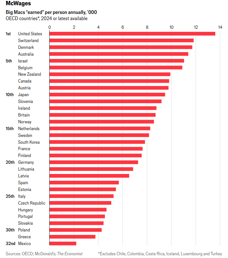 A PPP-Labour Market Framework: The Economist's McWages index uses a purchasing power parity framework to compare real wages across OECD markets, using Big Mac pricing as a standardized basket.