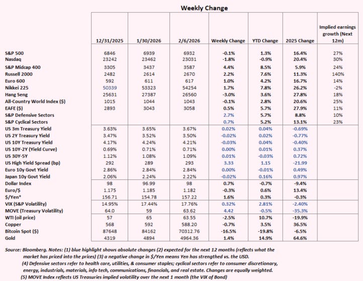 Still, investors have shown to scrutinize much more on winners vs. losers in this AI trade and will need to see ROI from the AI spend. Productivity growth will be even more important now as the US is facing more labour supply constraint resulting from ageing population, lower immigration, and more restricted international trade and supply chains. The latest JOLTs job vacancies estimates of 6.5 million (a decline of 400k in December after -500k in November) are the lowest since early 2020, representing 0.87 vacancy per unemployed worker. Yet, other soft data like the January ISM manufacturing PMI of 52.6 (+4.7 points from December) is showing growth recovery.
