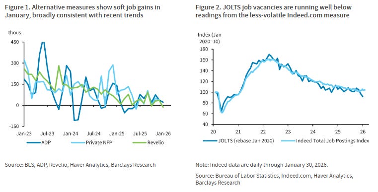 As Barclays research pointed out, productivity growth is good for economic policy—less worry by governments on the debt dynamics, growth with less inflationary pressures, and a boost to potential GDP growth. In fact, this is what the Fed Chair nominee, Kevin Warsh, has argued for—lower rates based on productivity gain from AI spending without the need to borrow on the Fed’s balance sheet.